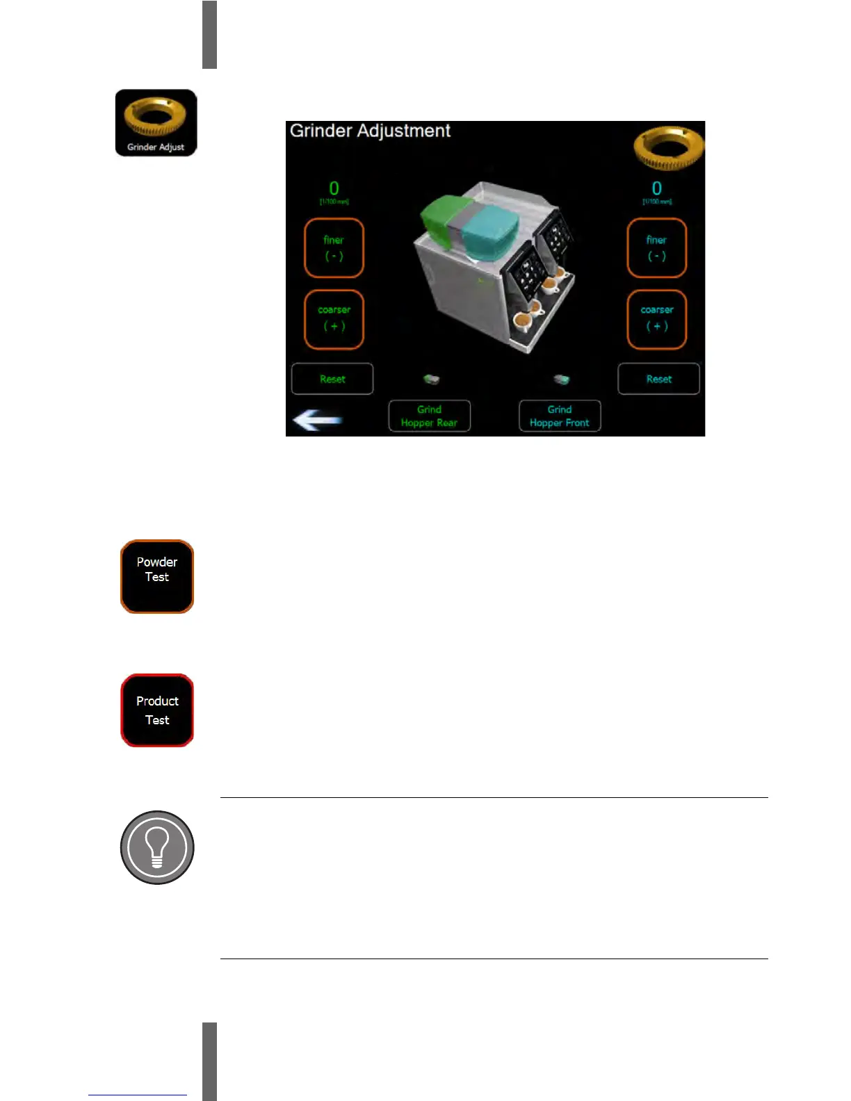 5 Press the “Powder Test” button. The ground coffee powder falls