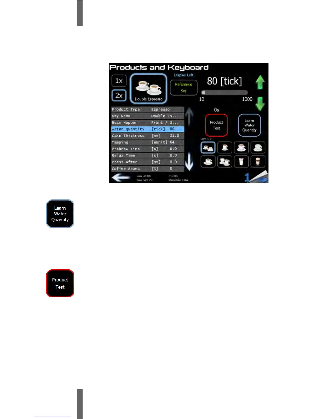 Water Quantity” again to stop the product dispense.