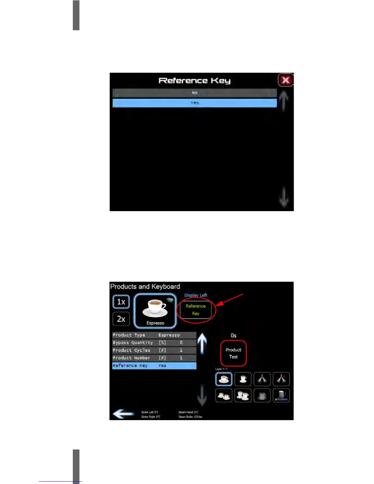 1 Set the reference key on/off by pushing Yes/No or exit the menu