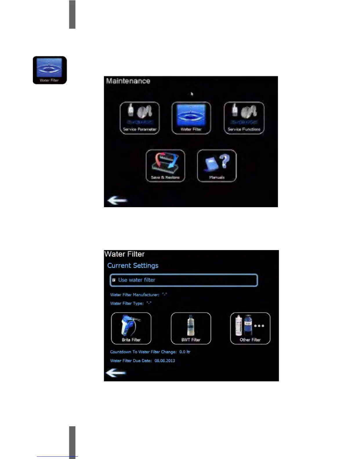 Eversys e'2ct - 8 Maintenance Menu; 8.1 Water Filter