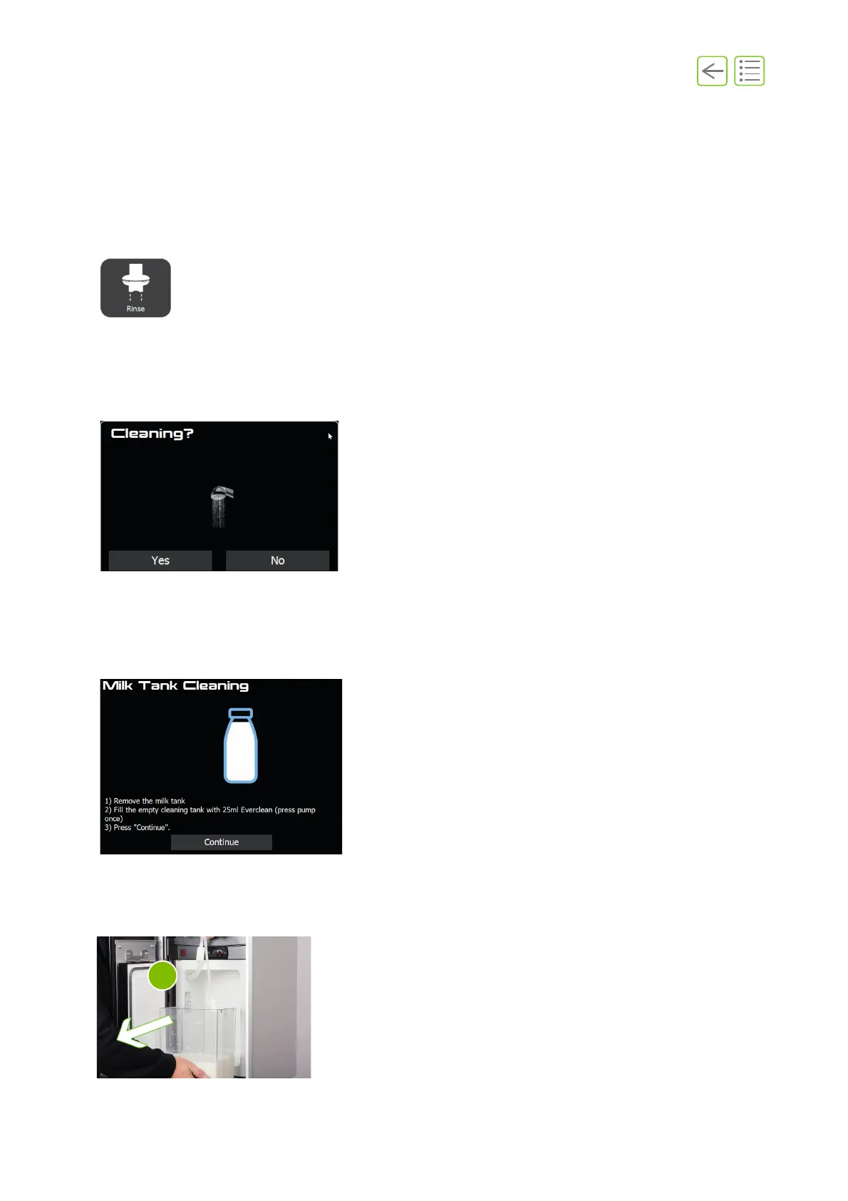 cleaning is performed). The following procedure is illustrated with the e’fridge, the milk tank and the