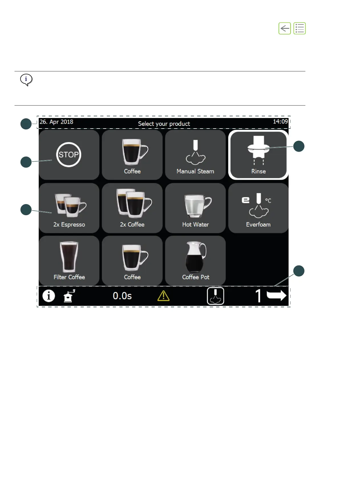 Eversys e'4 - Main Screen Layout