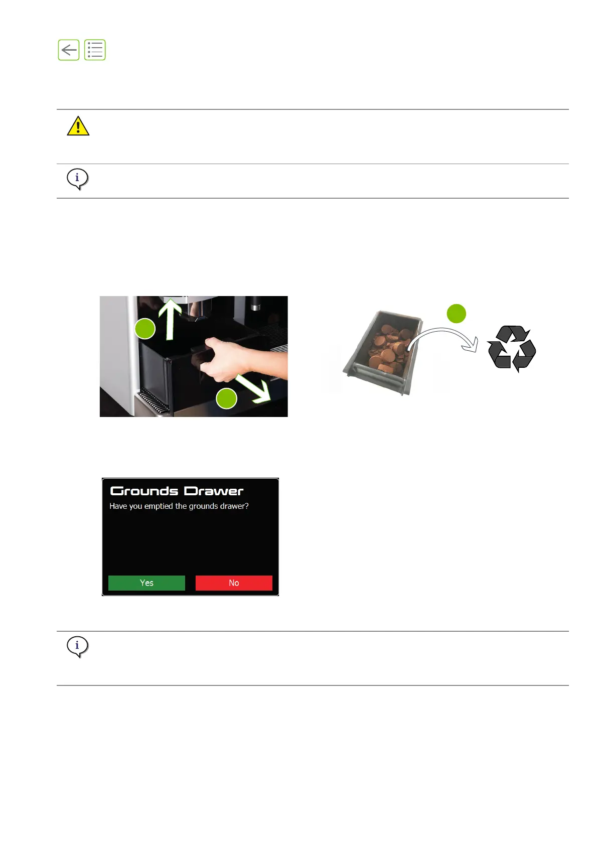 E. Acknowledge emptying of the grounds drawer.