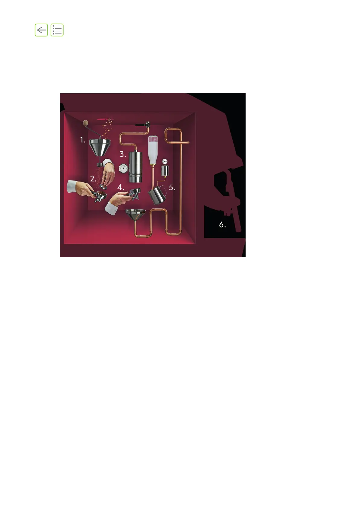 Reverse gravity extraction vertical infusion optimizes powder efficiency as the espresso is produced.