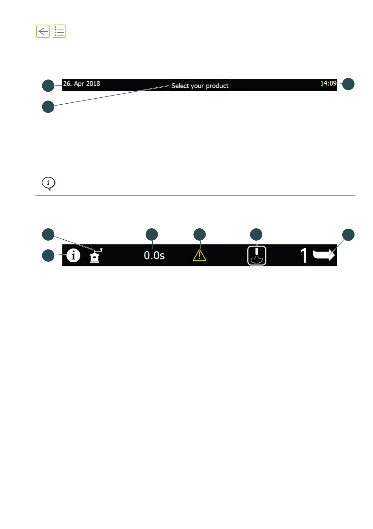 The header strip is always visible except when the rinse top layer is displayed (see “5.3” on page 39).