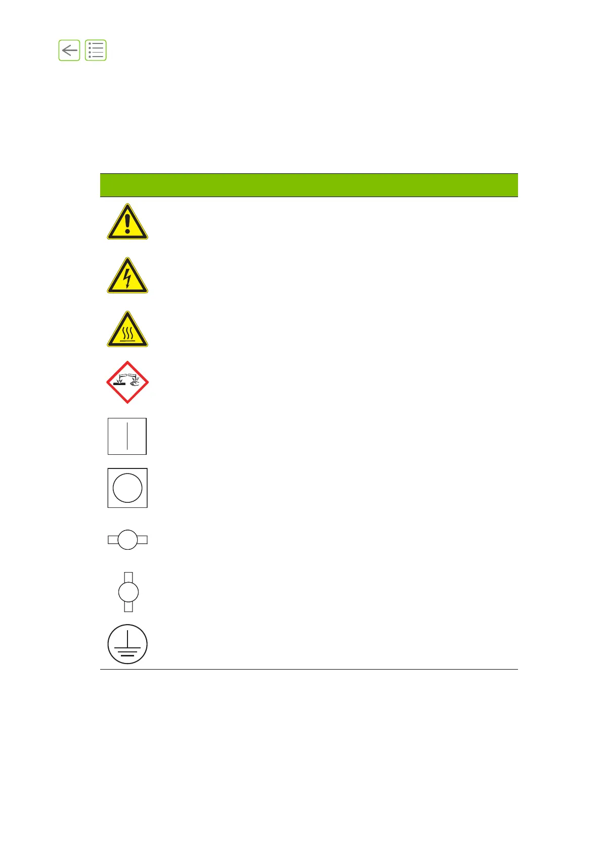 The following signs can be found on the e’line. Associated warnings are explained in the table.