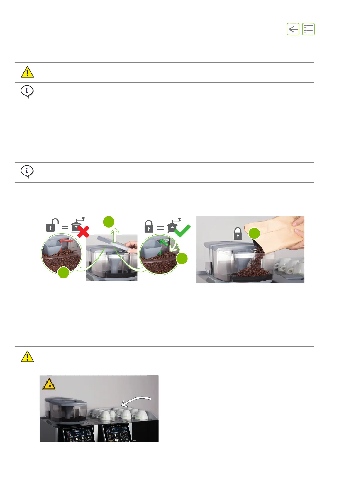 When unlocked (2b) the bean hopper is loose, and it will not be possible to grind coffee.