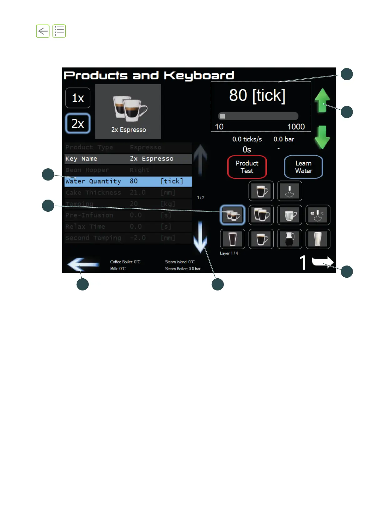 (4) Up/down keys: Use these arrows (green) for fine adjustments.