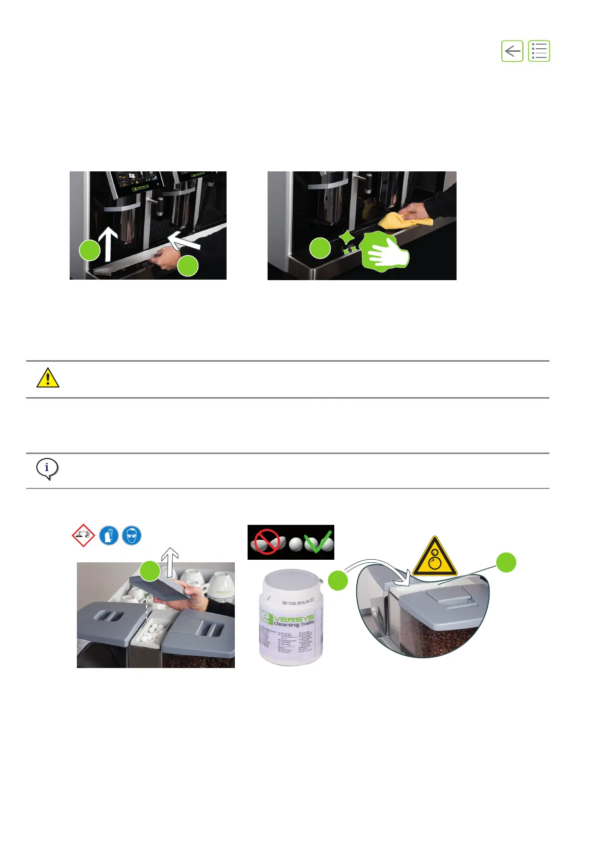 Make sure that there are no broken Eversys cleaning balls