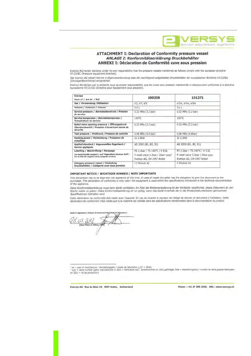 EVERSYS AG CP89 Rue du Biais 19 CH-1957 Ardon