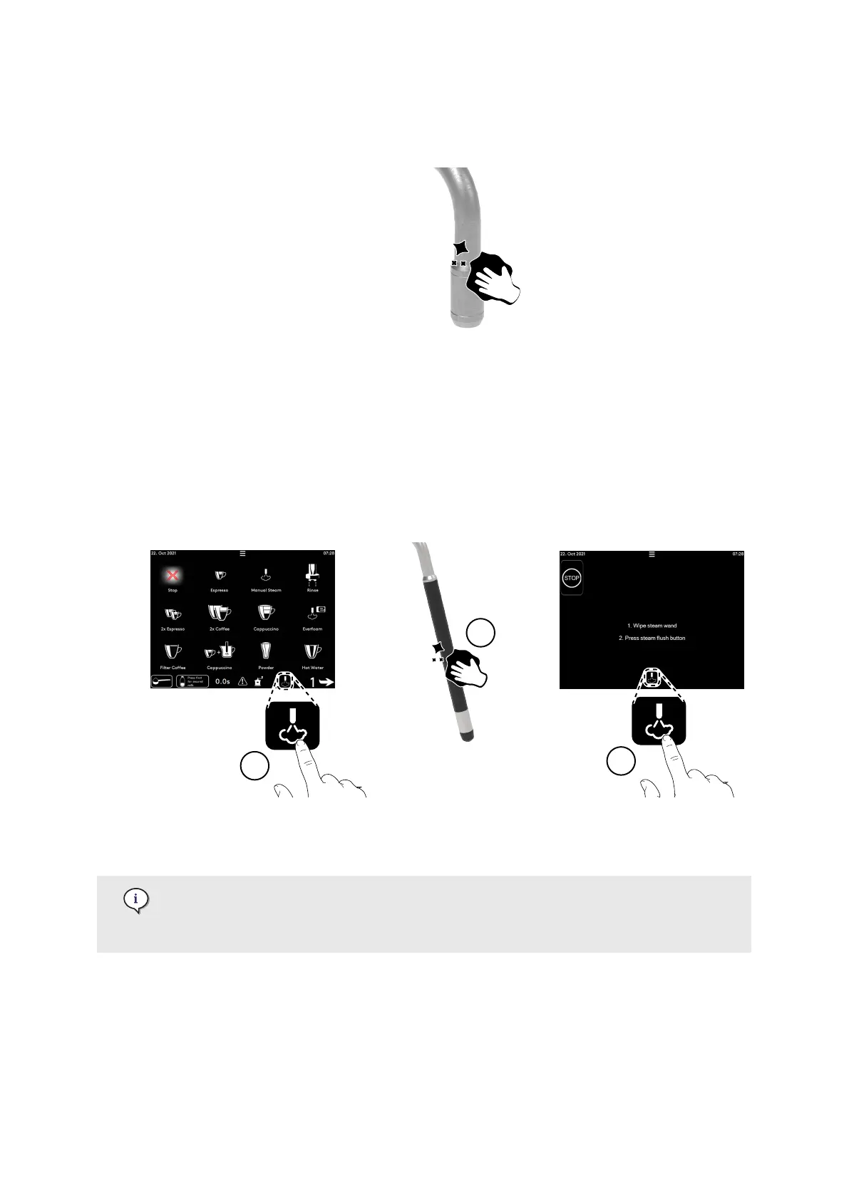 2. Wipe the steam wand with a damp cloth (2). Change cloths every day.