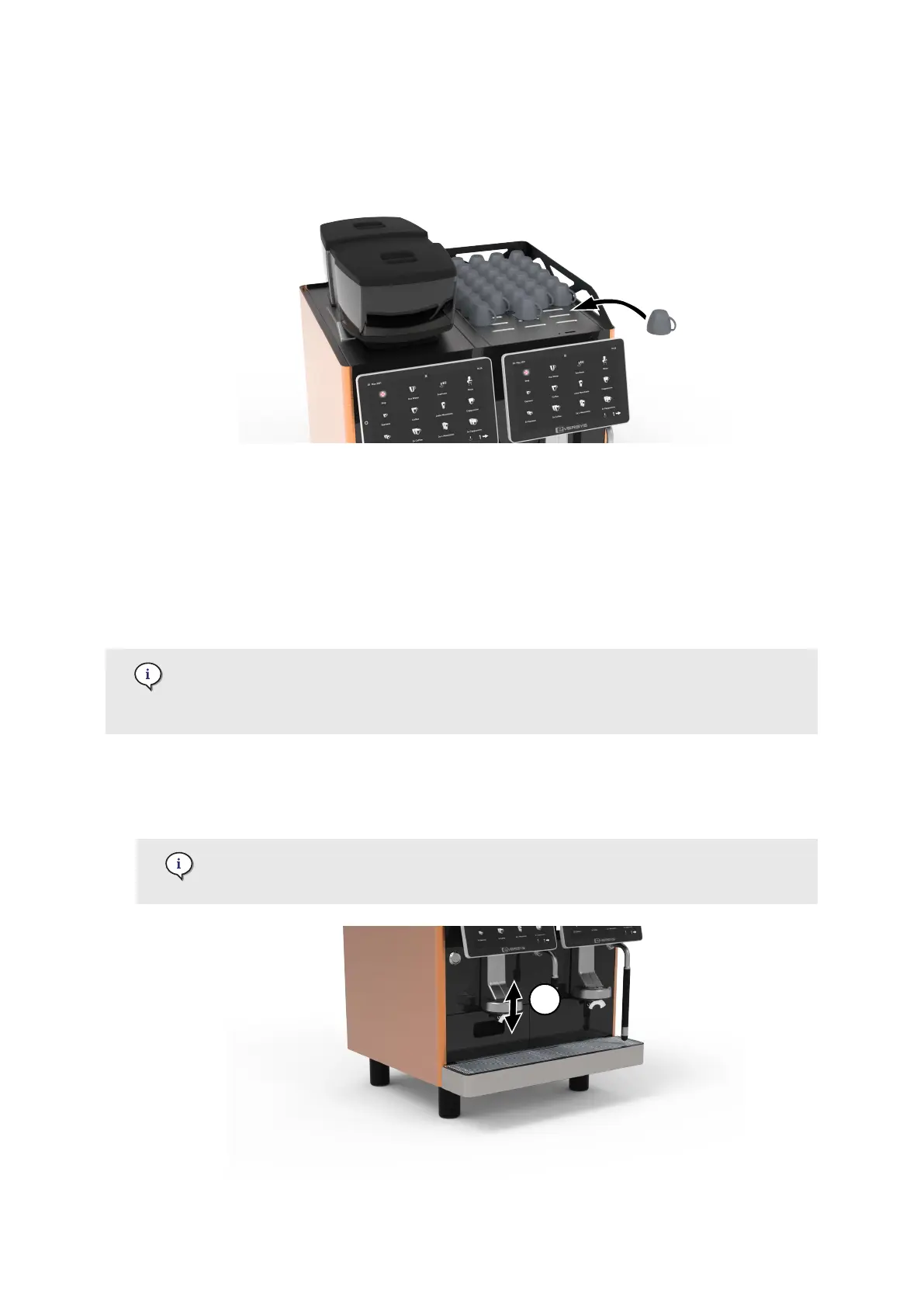 • Move the coee spout (1) up or down to adjust it according to cup height.