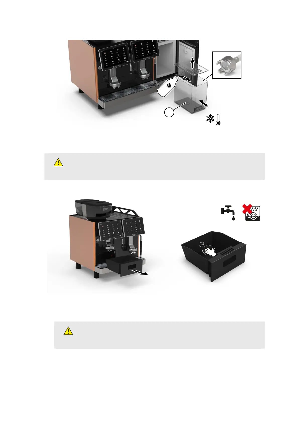 After rst startup or during cleaning, the grounds drawer may contain hot