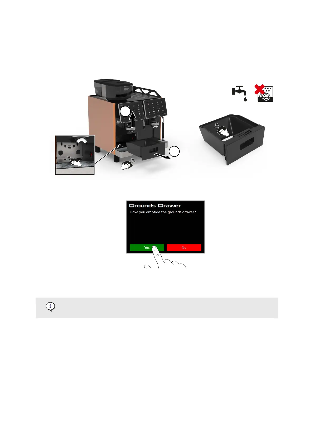 6. Press Yes to acknowledge emptying of the grounds drawer (or No to cancel).