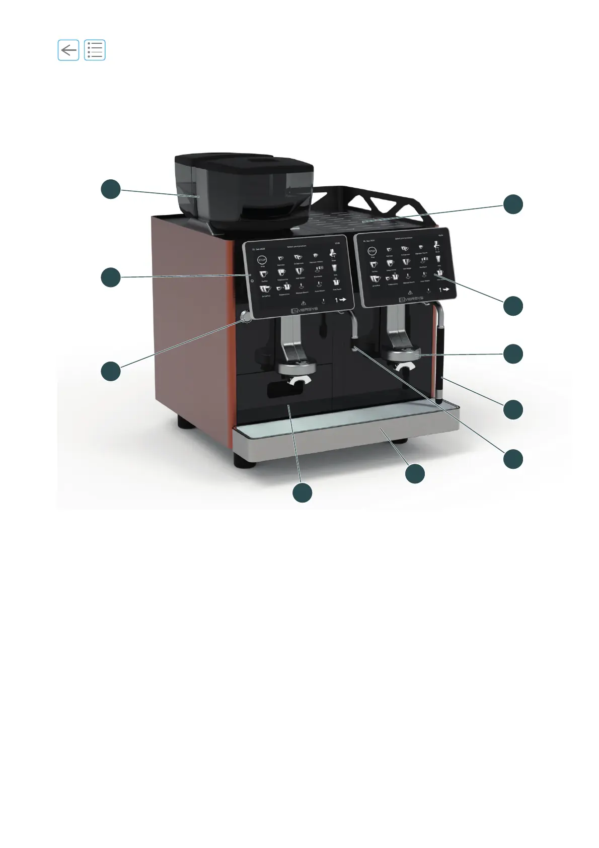 (2) Cup warmer surface (Up to 64 espresso