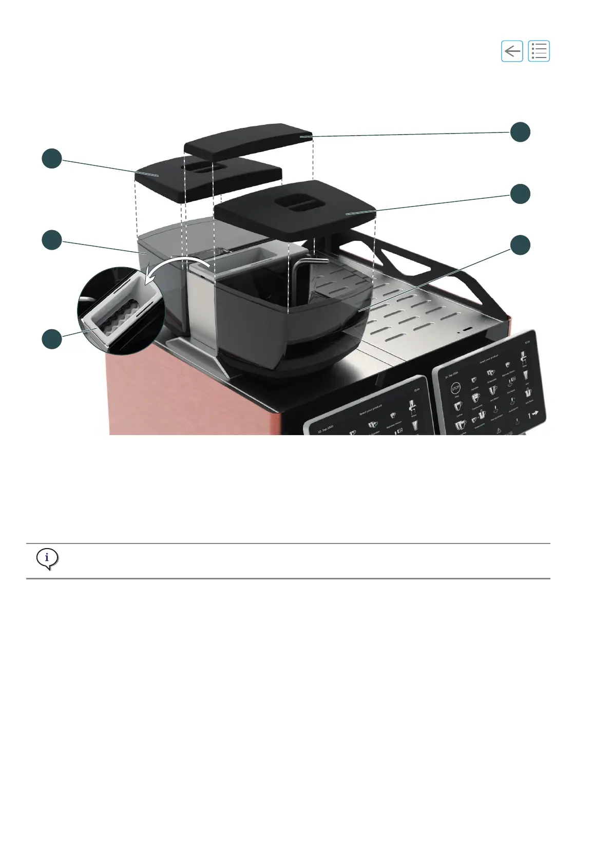 (6) Bean hopper lid (front)