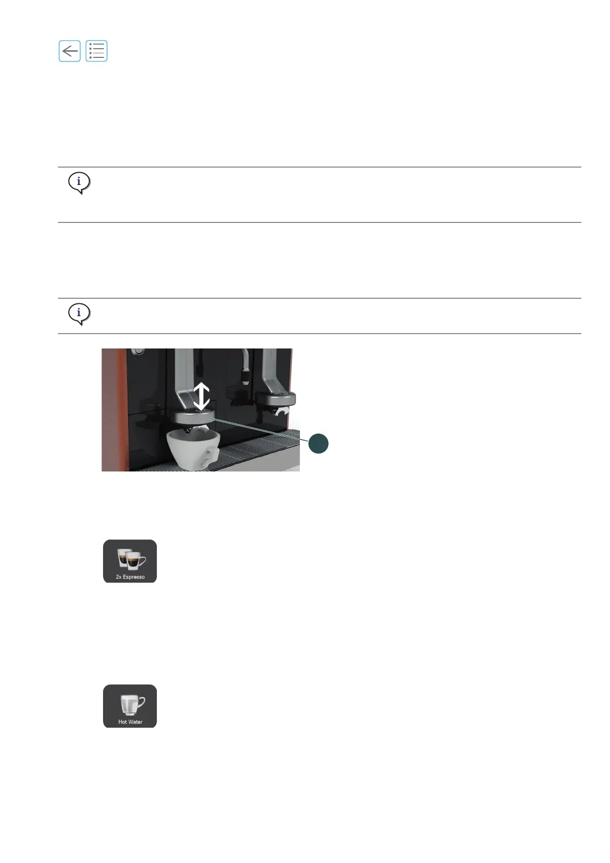 A. Move the coffee outlet (1) up or down to adjust it according to cup height.