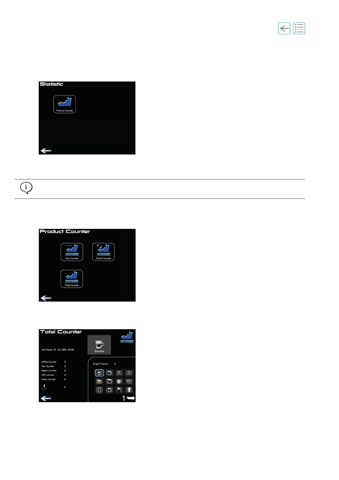 Eversys Enigma Classic E'2ct - Statistic; History; Product Counter