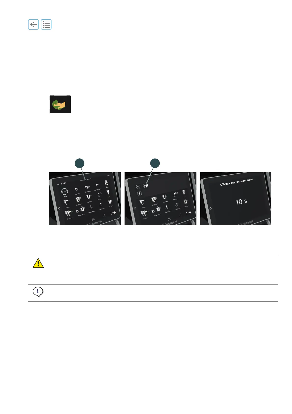 The countdown allows to clean the screen without the risk of starting a product.