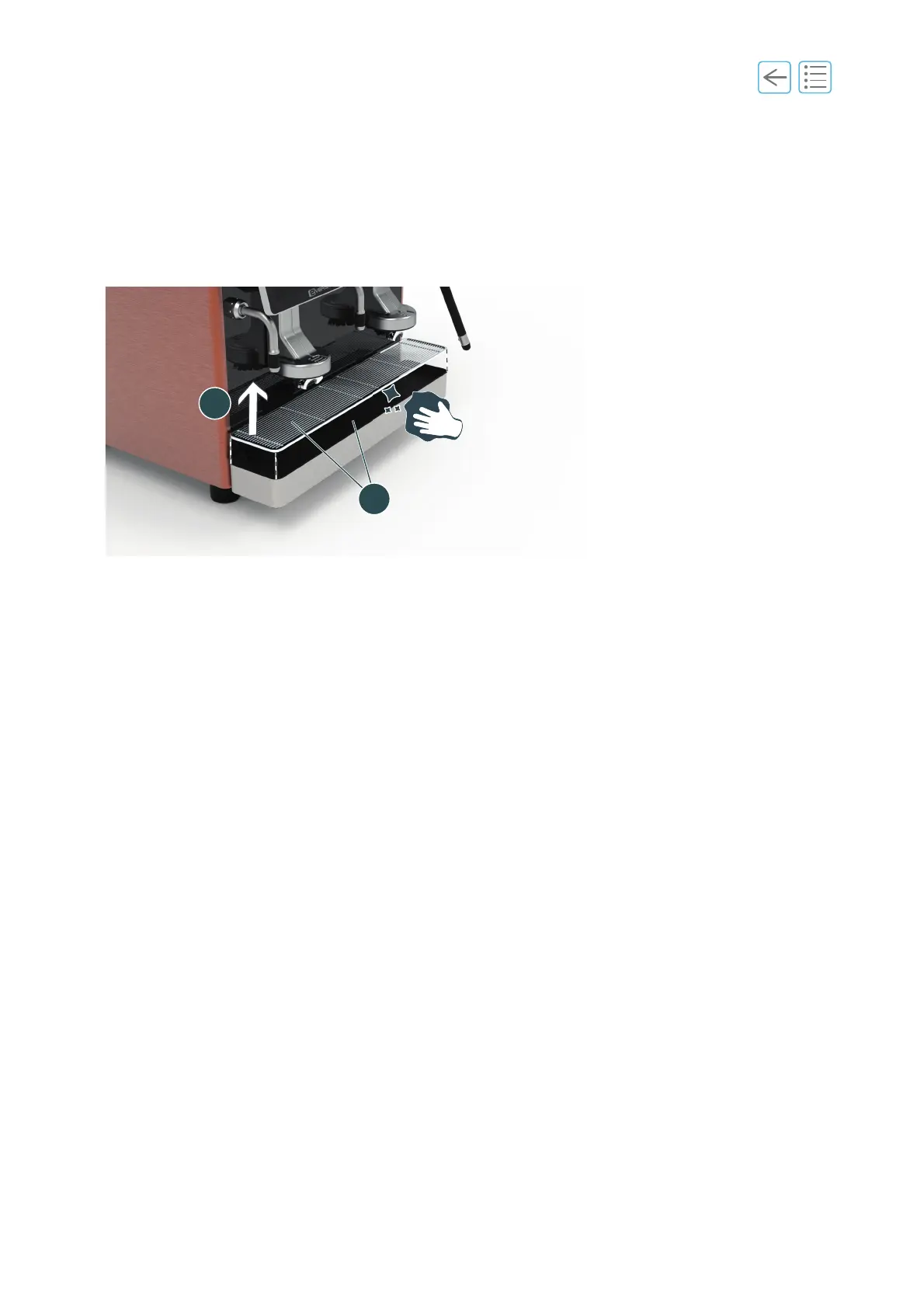 B. Remove the drip tray grid (1).