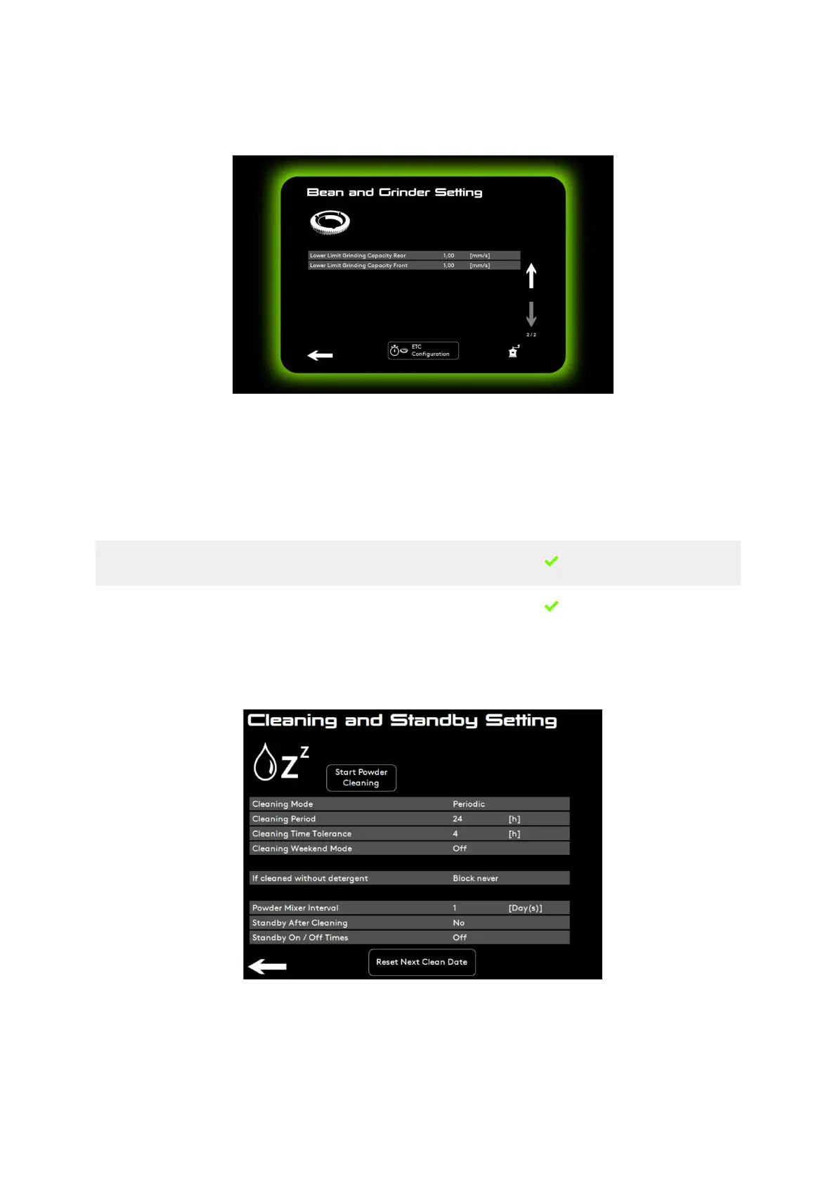 Eversys Enigma E'2c/Classic - User Rights in the Clean; Standby Menu