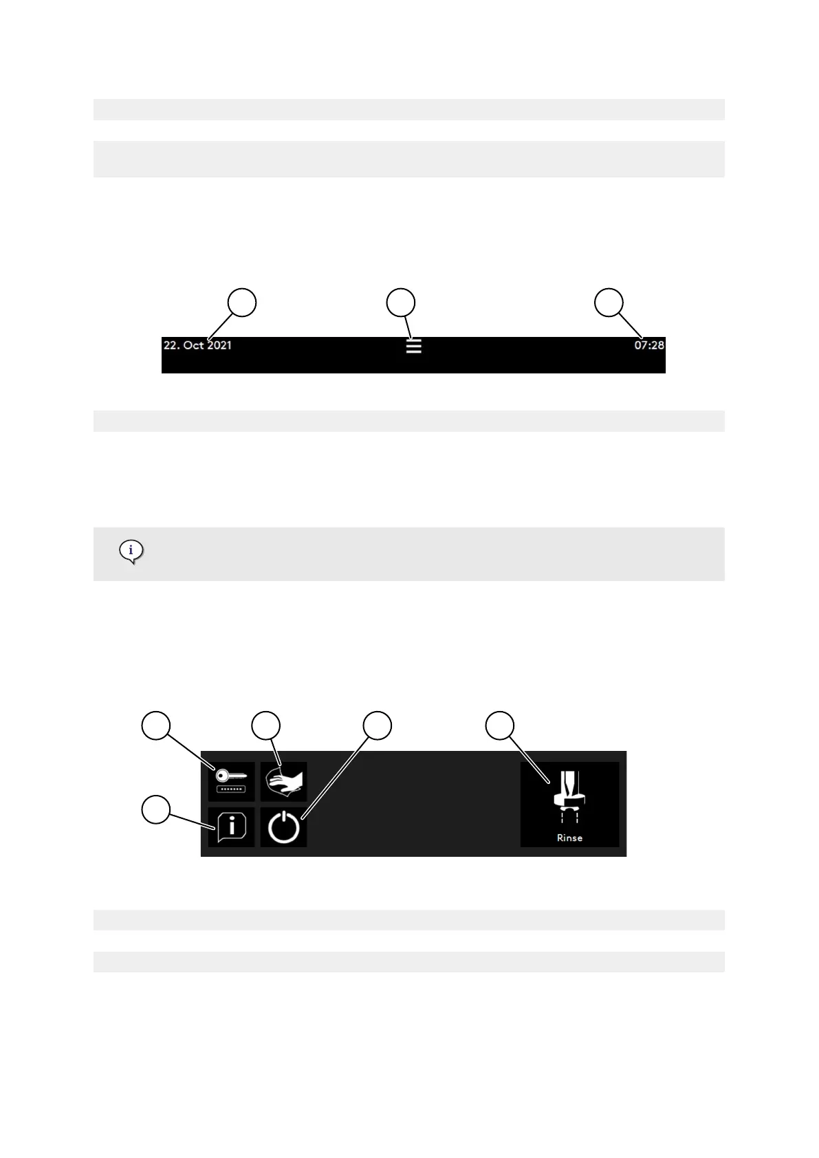 (2) Login access area (page 70) (5) Rinse button (page 59)