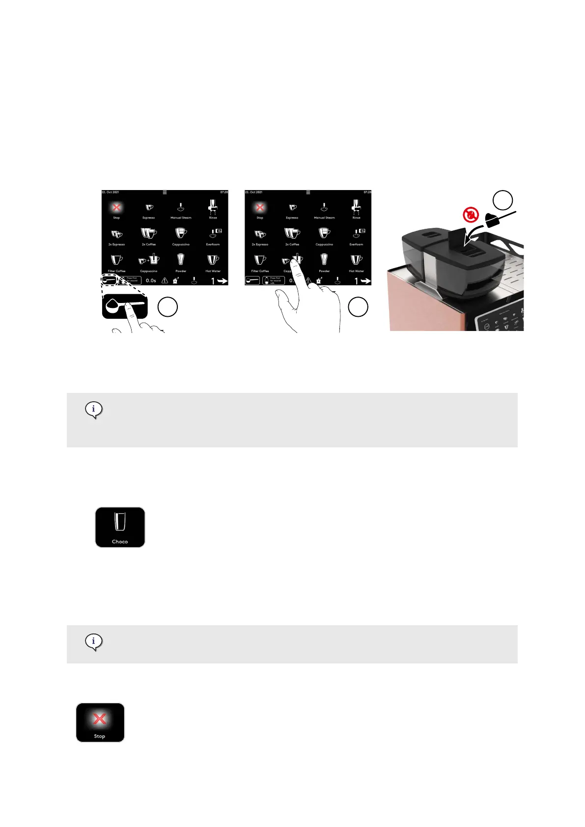 5.8.7. Dispense a powder product (e.g. choco) (machine option)