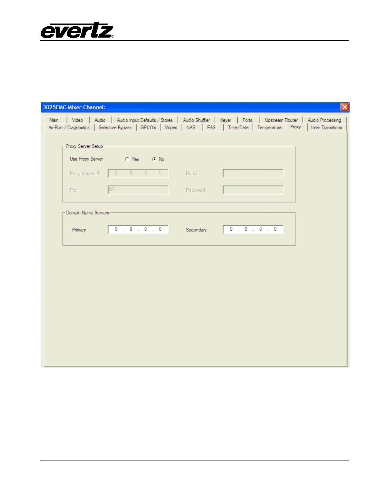 Proxy Server IP: This field sets the Proxy Server IP address. This is the company’s proxy server