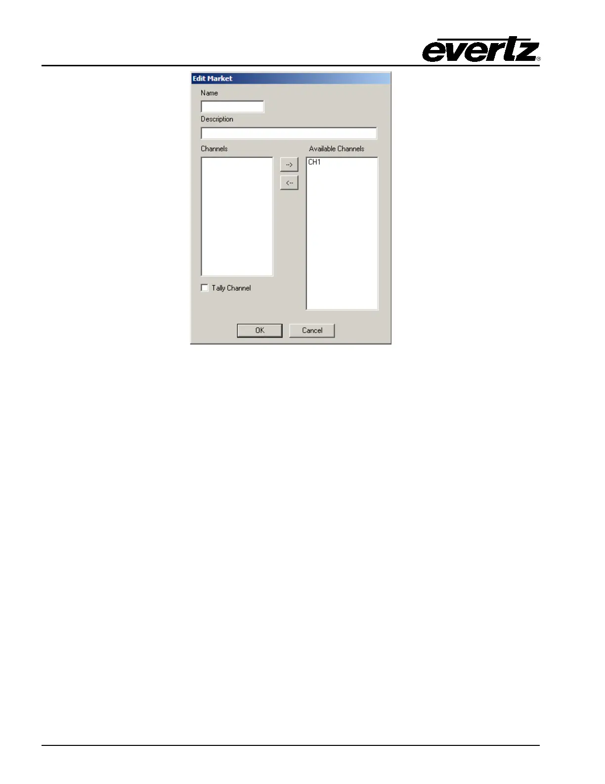 Tally Channel: Tick this box for the channel that will be the master tally back for the Market. Only one