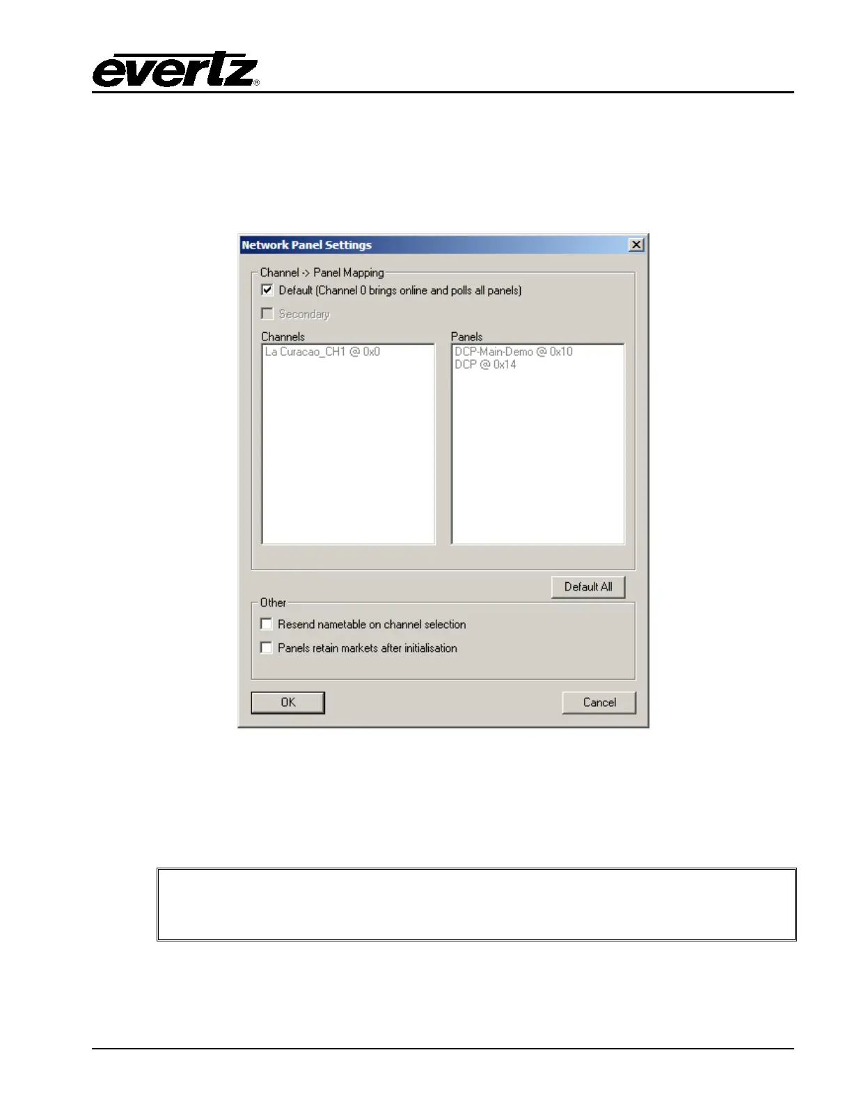 NOTE: If the channel that brings up a panel is taken off-line, the panel(s) assigned