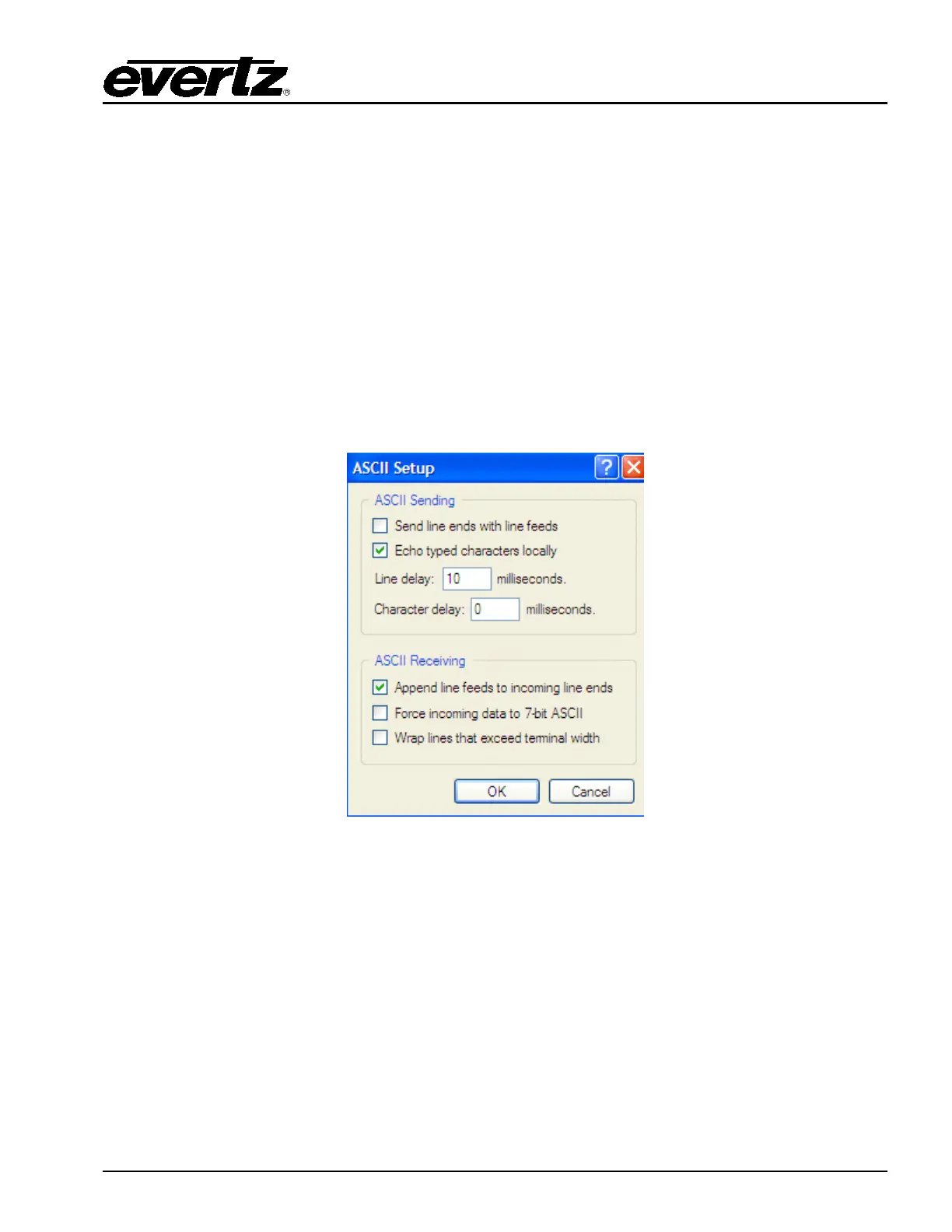 ASCII Receiving is configured for ‘Append line feeds to incoming line ends’.