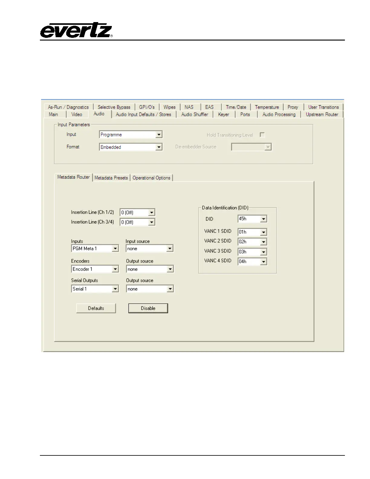 evertz 3025EMC - Logos; Audio Configuration; Input Parameters; Figure 4-16: Audio Tab