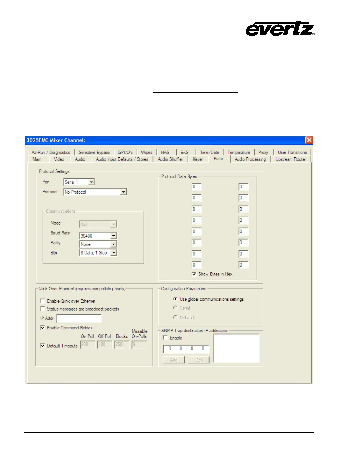 This tab enables the user to edit the configuration of the Q-link and serial ports. Each EMC channel has a