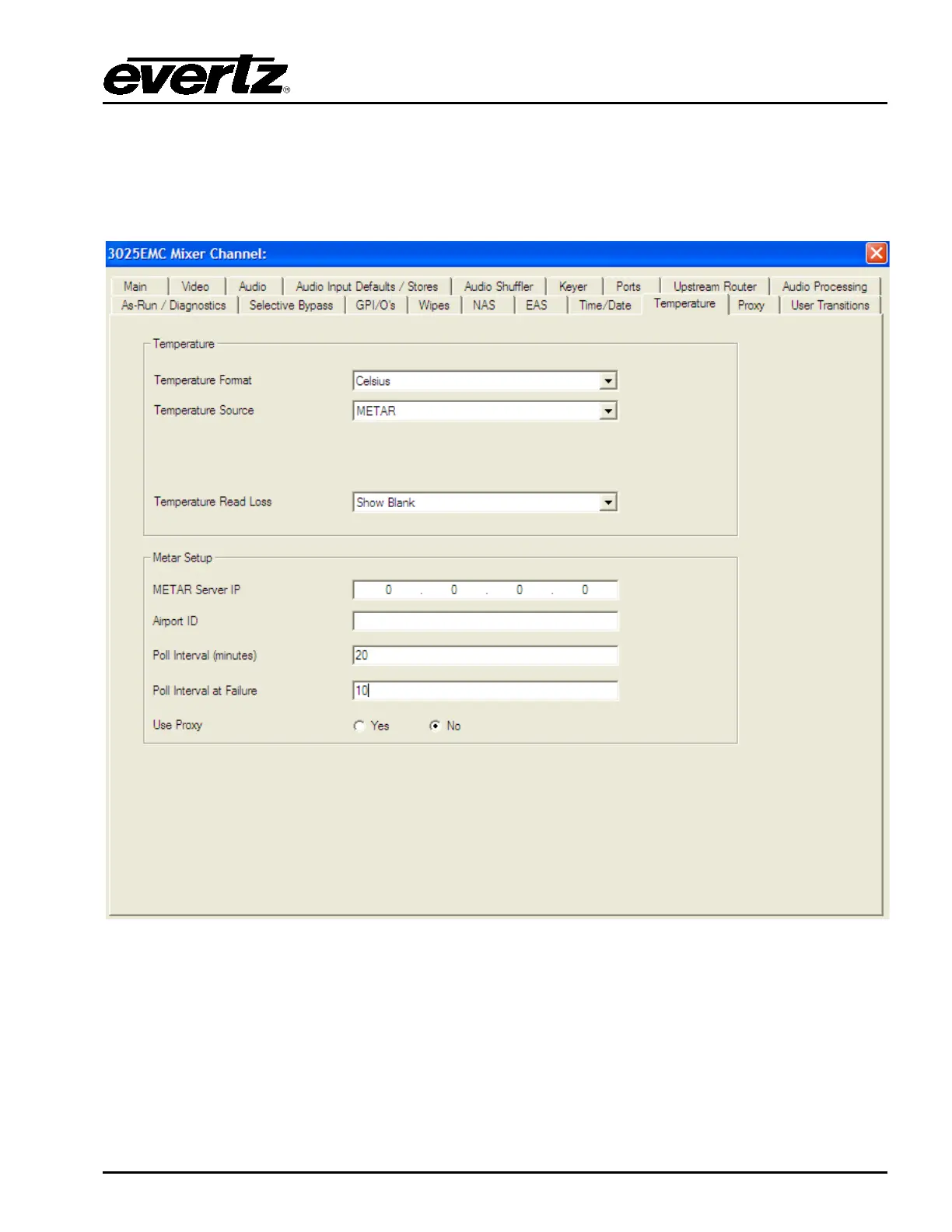 This section configures the temperature parameters. This is the source used for temperature graphics
