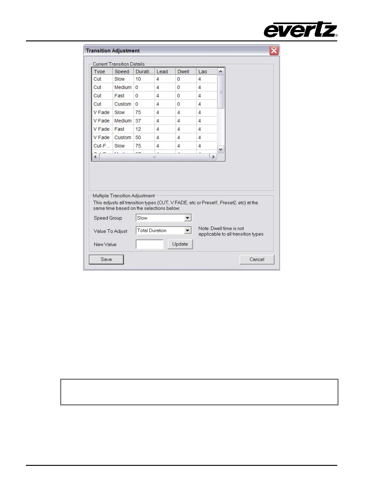 Figure 4-7: Transition Adjustment Window