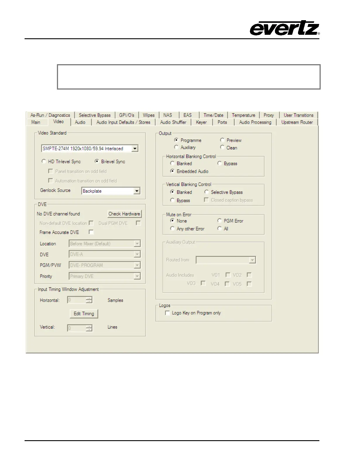 The Video Transition Offset can be configured in a range from -4 to +4. The setting is in