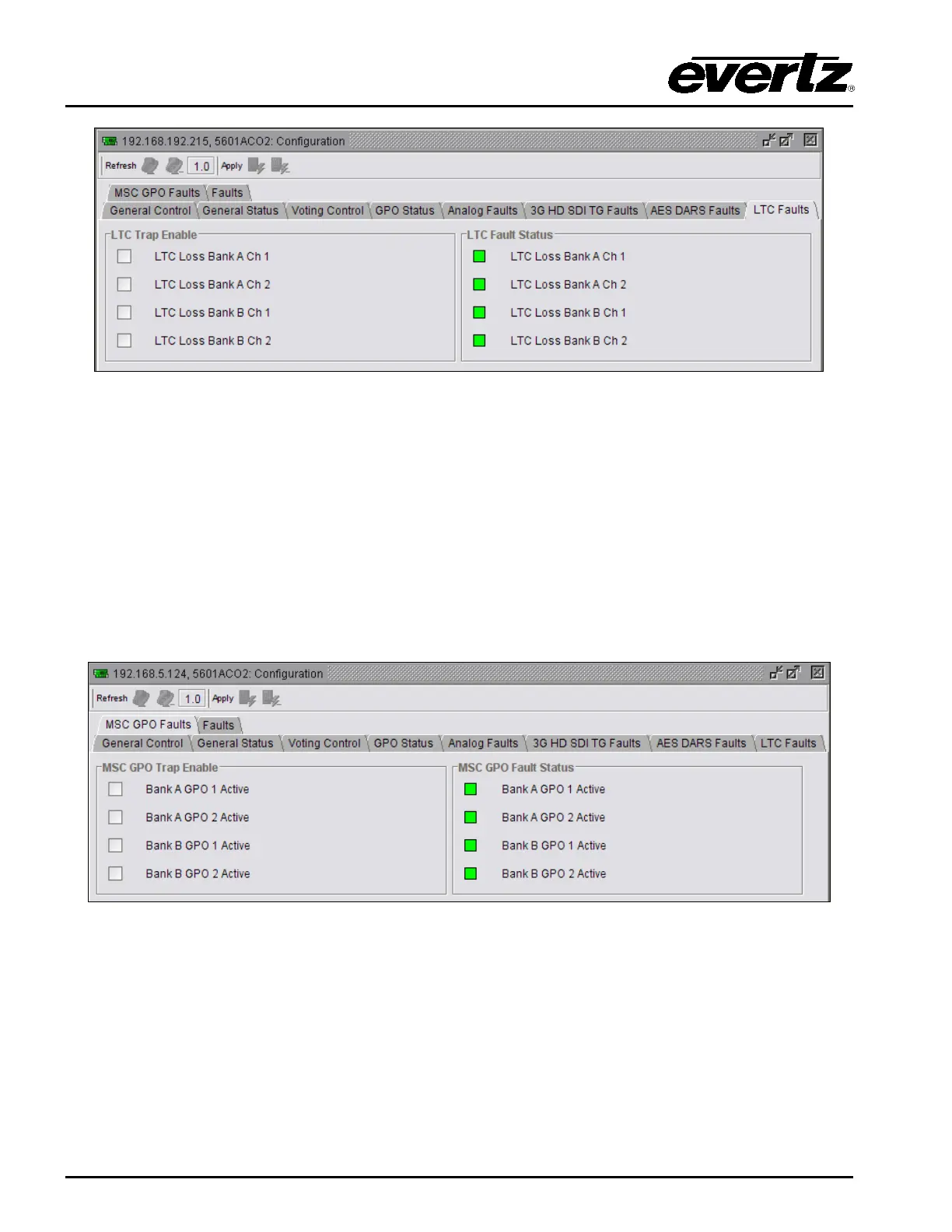 indicates a fault condition. If the box is green, then the corresponding GPO is not active. If the box is