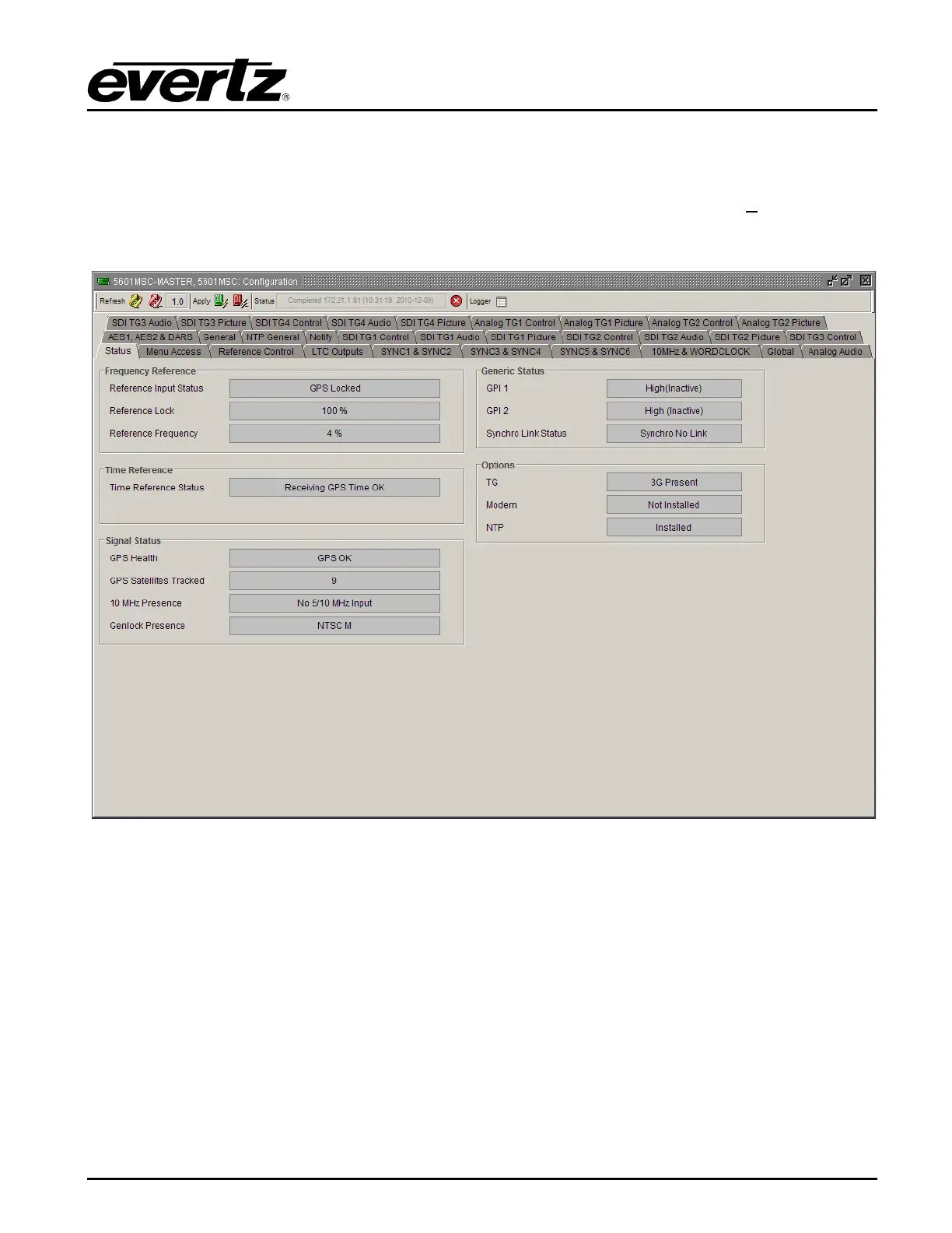 The configuration view will appear and automatically load all settings from the 5601MSC. The refresh