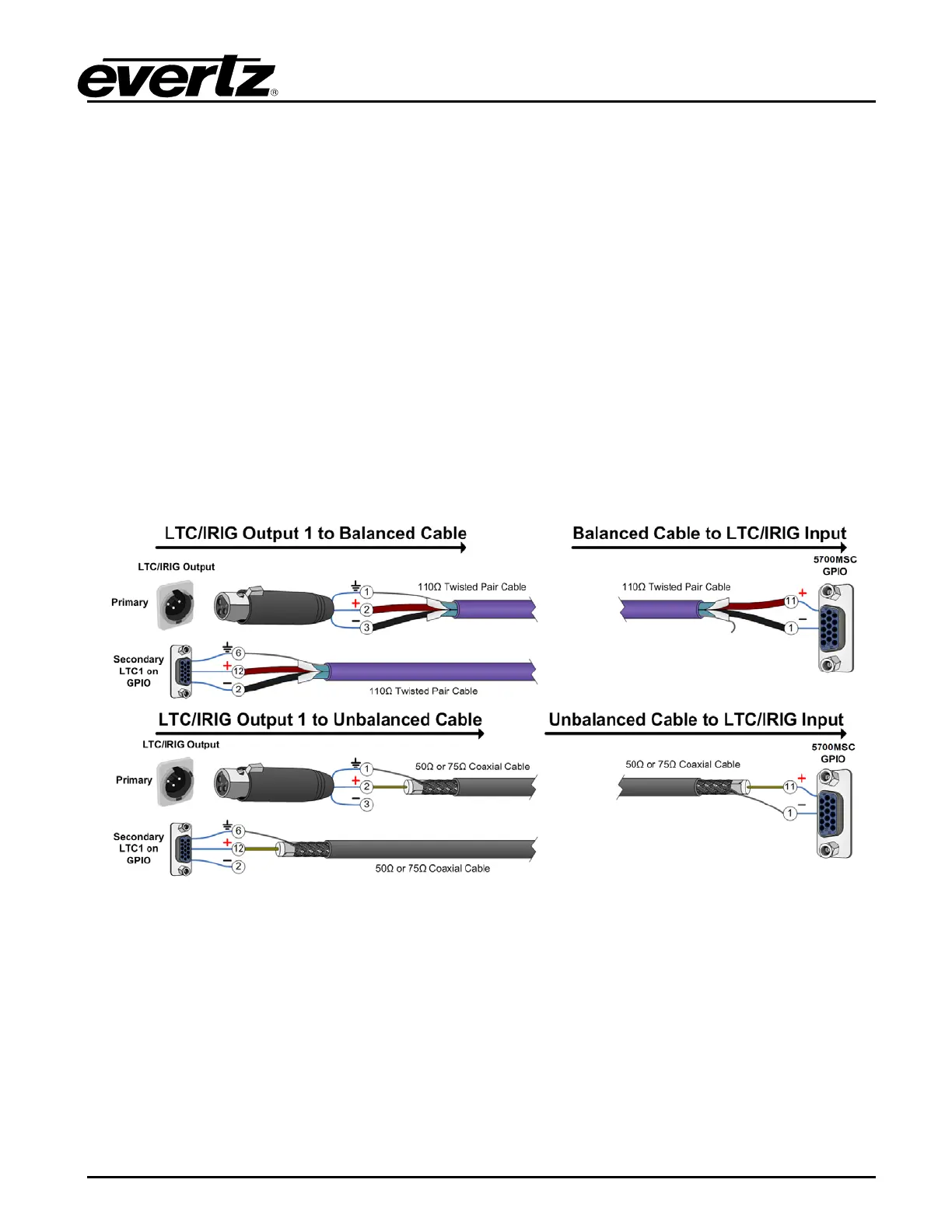 input, or to use the LTC outputs to drive an unbalanced IRIG cable, refer to Figure 3-21 for examples