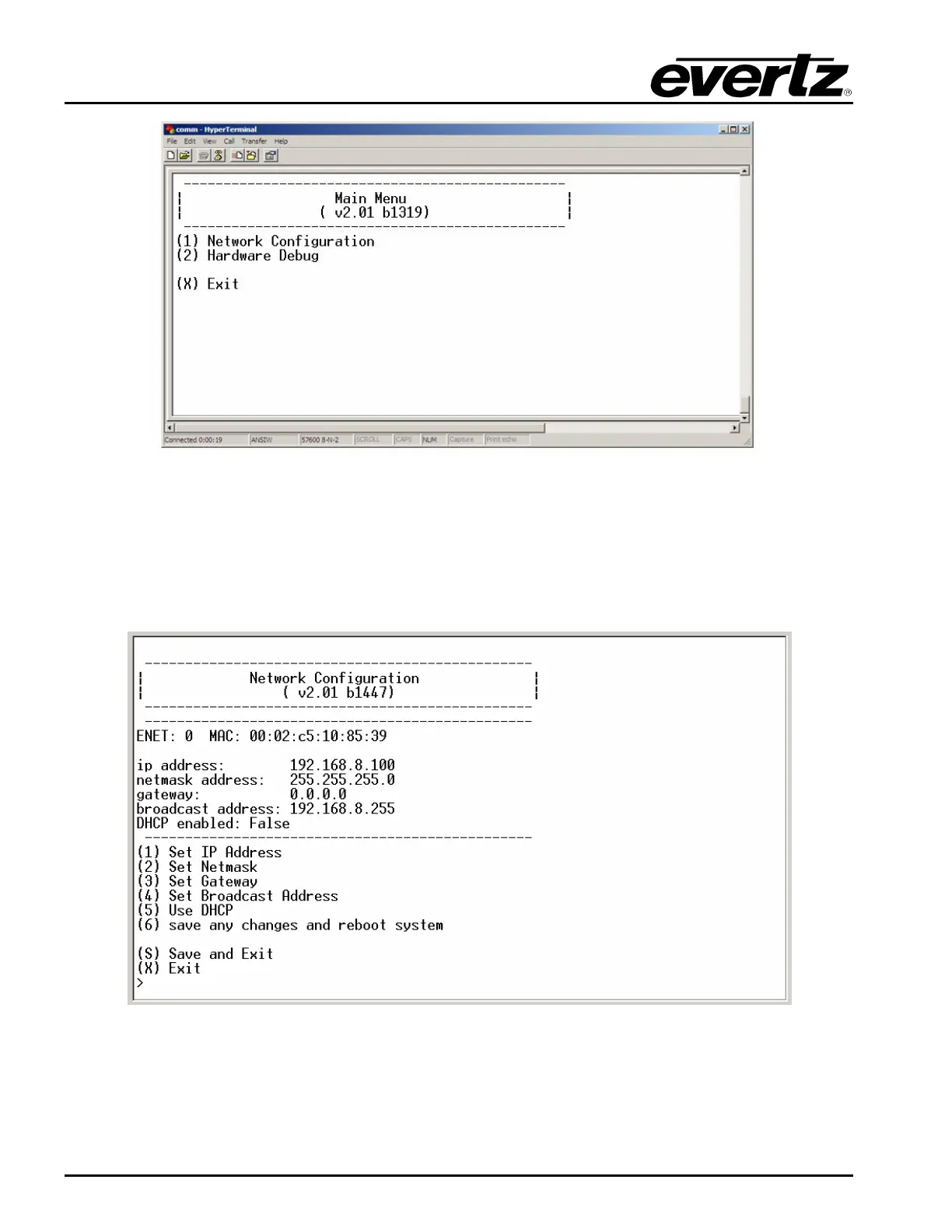 Figure 2-8: HyperTerminal – Network Configuration
