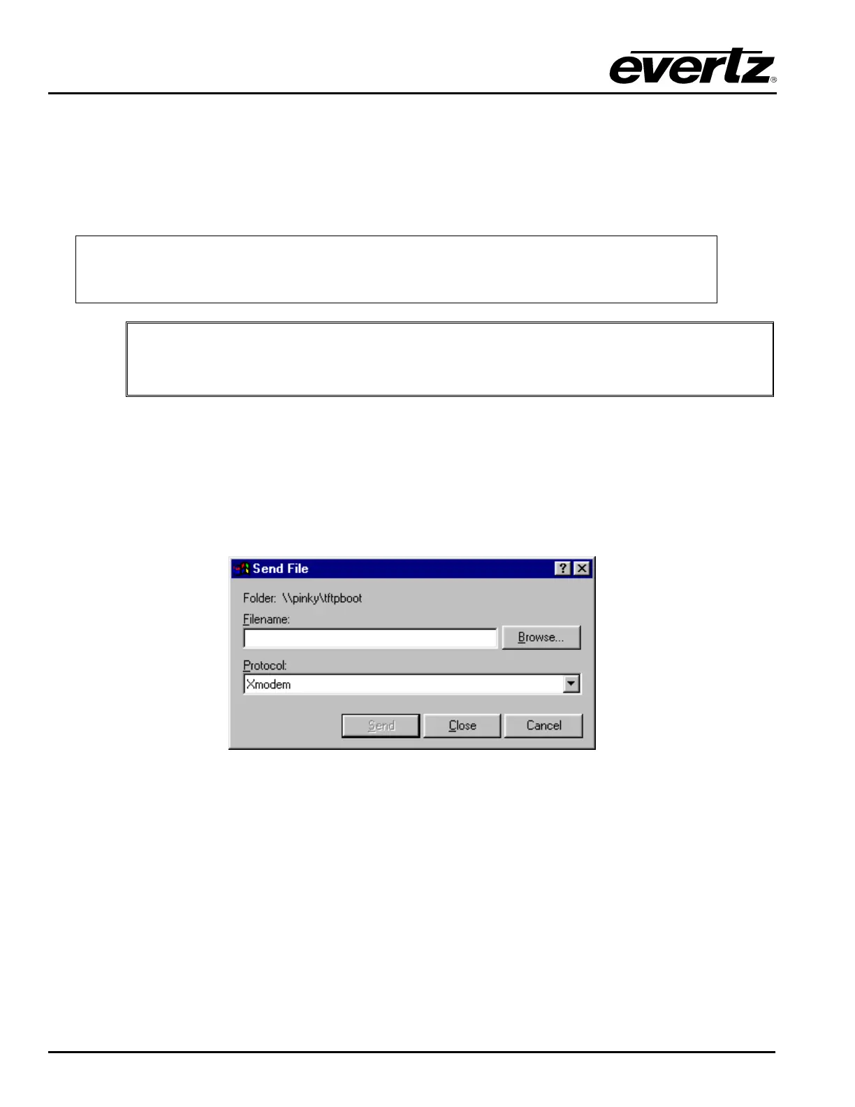 file…” from the “Transfer” drop-down menu in the HyperTerminal window. Upon selecting this option,