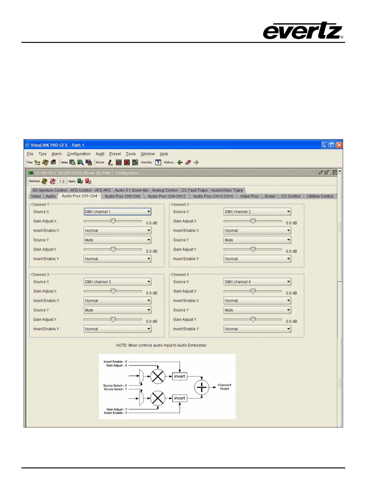 For the sake of brevity, only Audio Proc Ch1-Ch4 control tab will be discussed in this manual. Control tabs