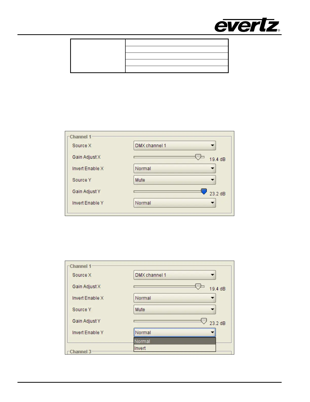 Figure 7-24: Invert Enable Y Drop Down Menu