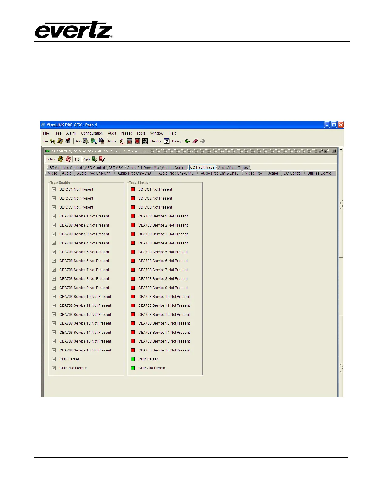 The CC Fault Traps control enables the user to enable or disable Closed Caption traps and view trap