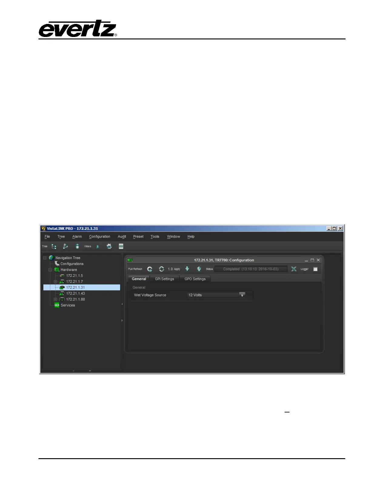 configuration view will appear and automatically load all settings from the tally router. The refresh