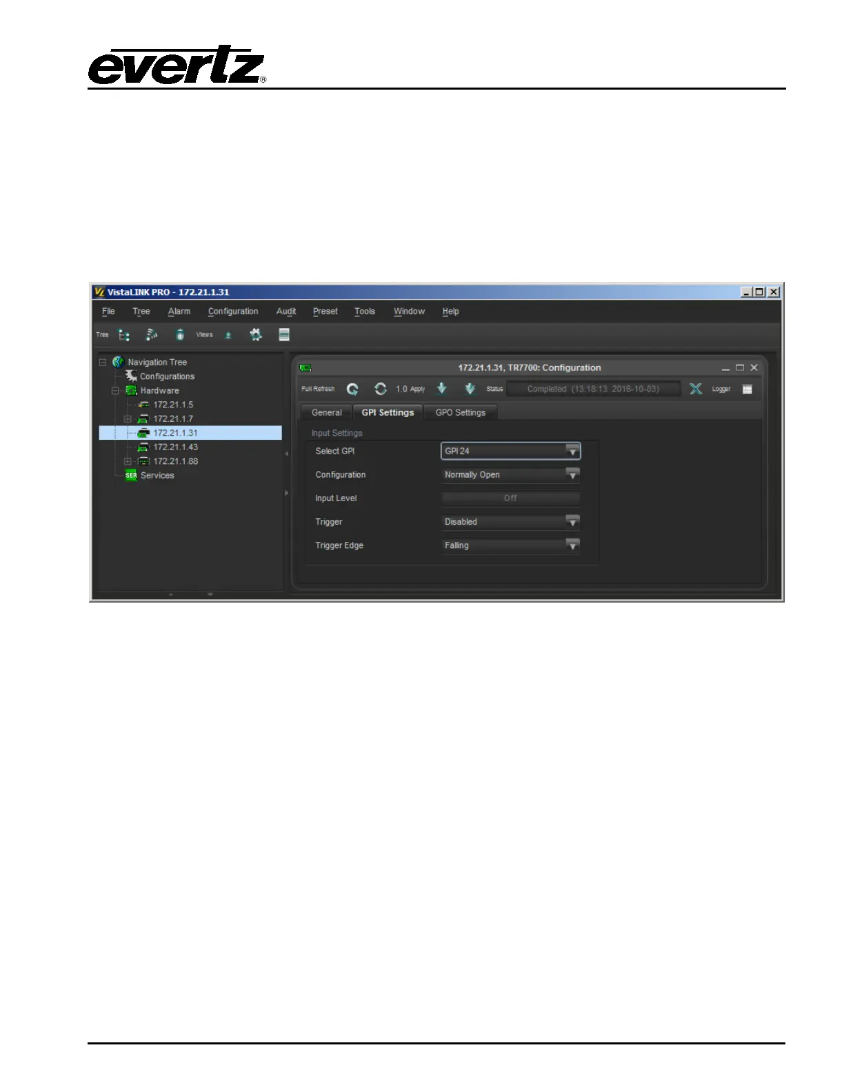 3. The “Input Level” displays the current state of the selected GPI.