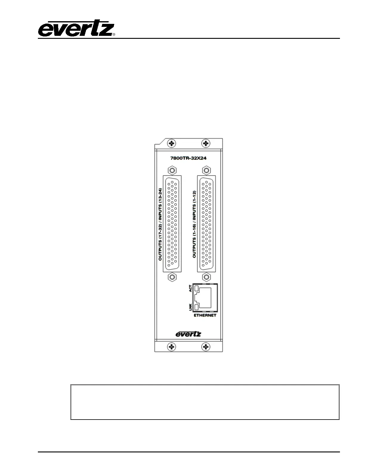 Figure 3-1 is an illustration of the rear plate I/O module that accompanies the 7800TR-32x24. The rear