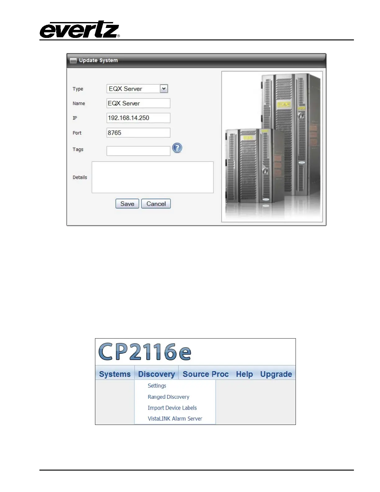 evertz CP-2116E - Discovery Menu; Figure 5-15: Update System Window; Figure 5-16: Discovery Menu