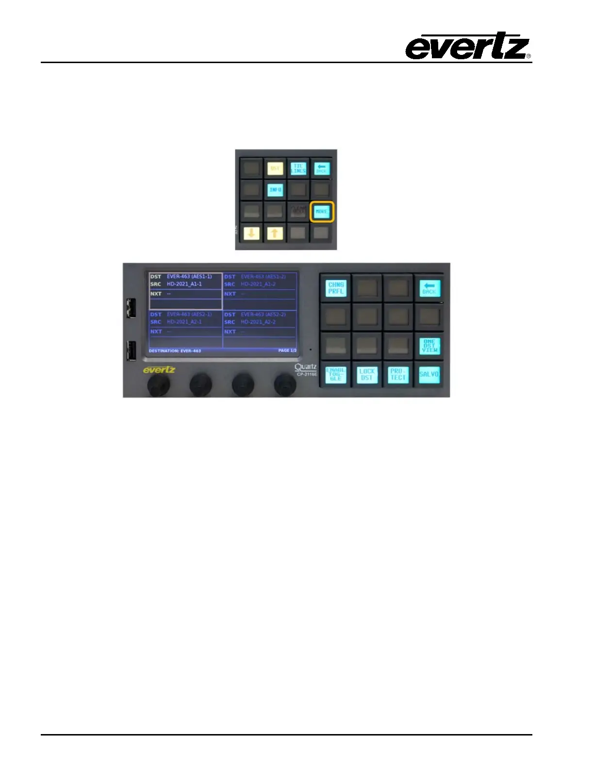 SRC button. The Up arrow will return the user to return to the Quad Destination view.