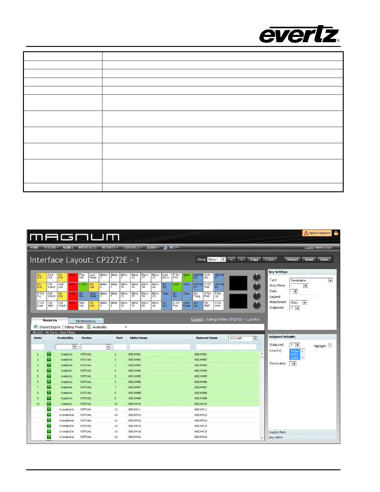 on all the currently enabled levels. The button will display the currently routed